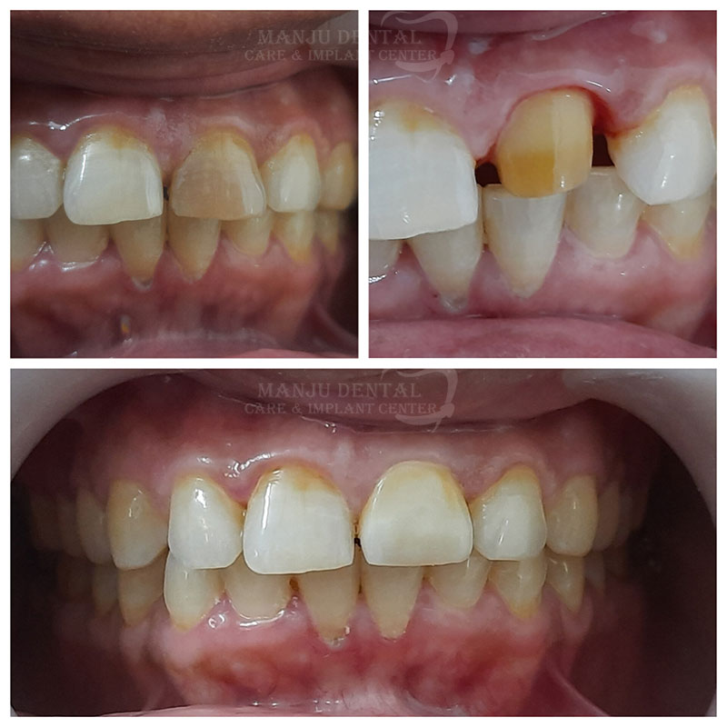 • Teeth with ample spaces between them resulting in food lodgment or unpleasant appearance can be crowned.